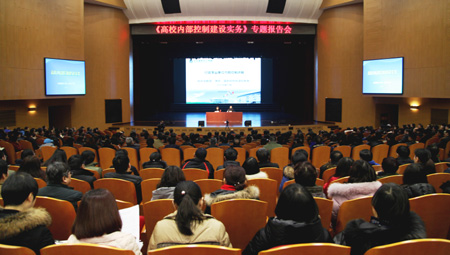 1月15日下午,学校邀请北京国家会计学院国务院特殊津贴专家、教授、博士生导师张庆龙教授作题为“高校内部控制建设实务”专题报告会。报告会在真知讲堂举行,学校领导戴建兵、刘敬泽、杨士彬以及各单位科级以上干部、财务人员500多人聆听了报告, 报告会由学校办公室主任关守义主持。